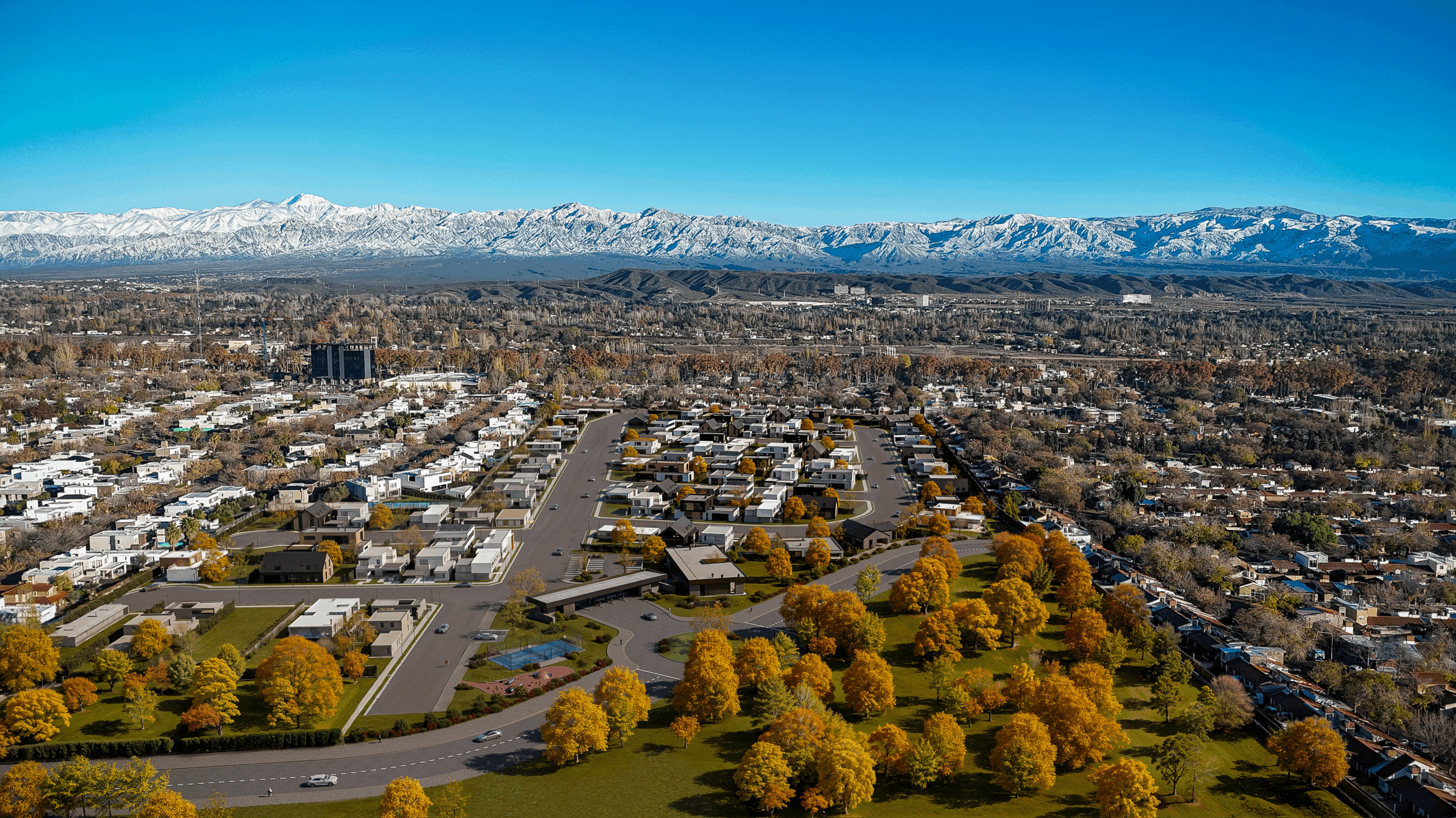 Cuenta con dos SUM, cancha de pádel, plaza de niños, servicios subterráneos y doble acceso.